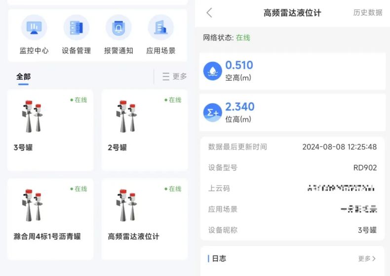 美儀合肥辦事處高工介紹,為了提升項目過程中物料管理的效率與安全性,本次合作中,美儀「雷達物位計+儀表云」主要應用于瀝青儲罐內料位的檢測。