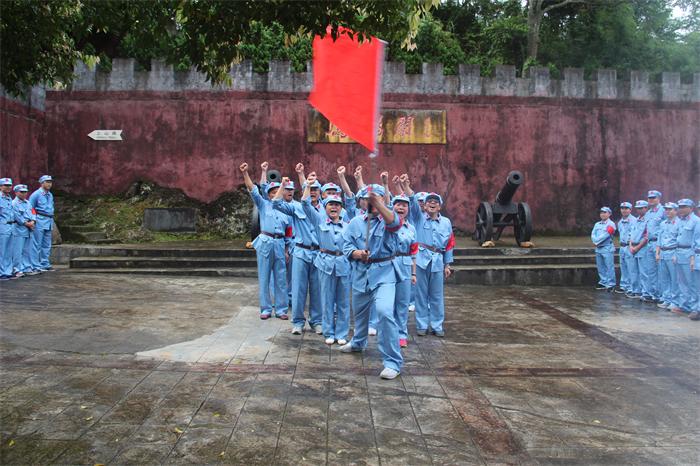 鷹揚關重走紅軍路活動的第一站是參觀紅七軍紀念館。我們在教官的指揮下,迅速分成四個縱隊,進行了隊列操練,重溫入黨誓詞和授旗,進入紀念館參觀,大家駐足觀看圖文并茂的紅七軍光輝戰(zhàn)斗歷程,了解那一段不平凡的革命斗爭史和崢嶸歲月,各路縱隊圓滿完成了參觀前教官交給的黨史知識競賽題。
