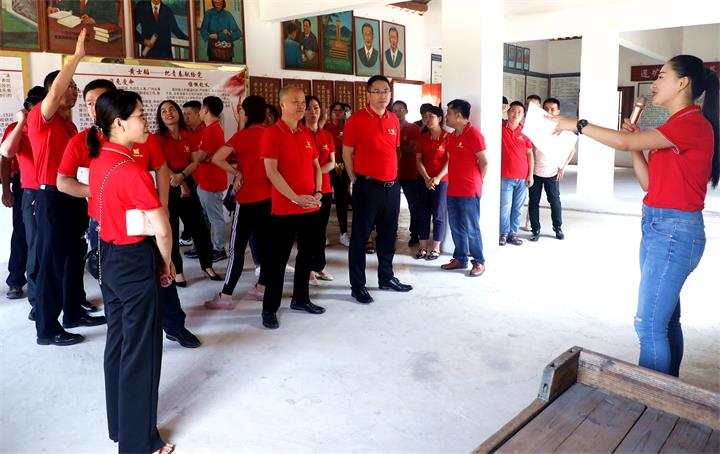 在黃士韜故居前,公司黨支部副書記蘭乾雄帶領(lǐng)黨員重溫入黨誓詞。全體黨員面向黨旗,緊握右拳,莊嚴(yán)宣誓。