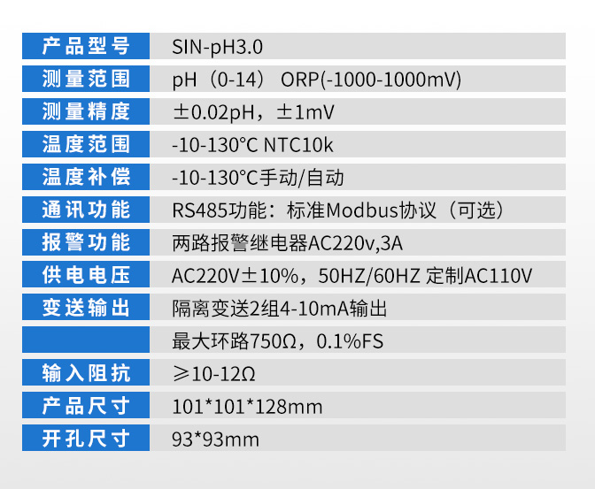 型號:SIN-pH/ORP3.0 精度:±0.02pH