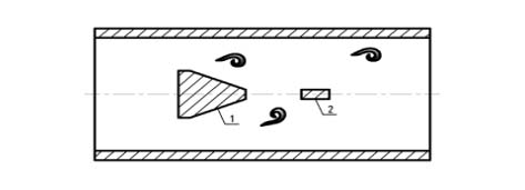 旋渦列在旋渦發生體下游非對稱地排列。設旋渦的發生頻率為f,被測介質來流的平均速度為V,