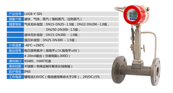 LUGB-Y-SIN抗震振渦街流量?jī)x表廣泛用于供熱公司、熱力公司、化工行業(yè)等行業(yè),對(duì)過熱蒸汽、飽和蒸汽、壓縮空氣和一般氣體、水和液體的計(jì)量和控制。加厚本體,可有效避免現(xiàn)場(chǎng)管道振動(dòng)帶來的數(shù)據(jù)波動(dòng)和誤差。