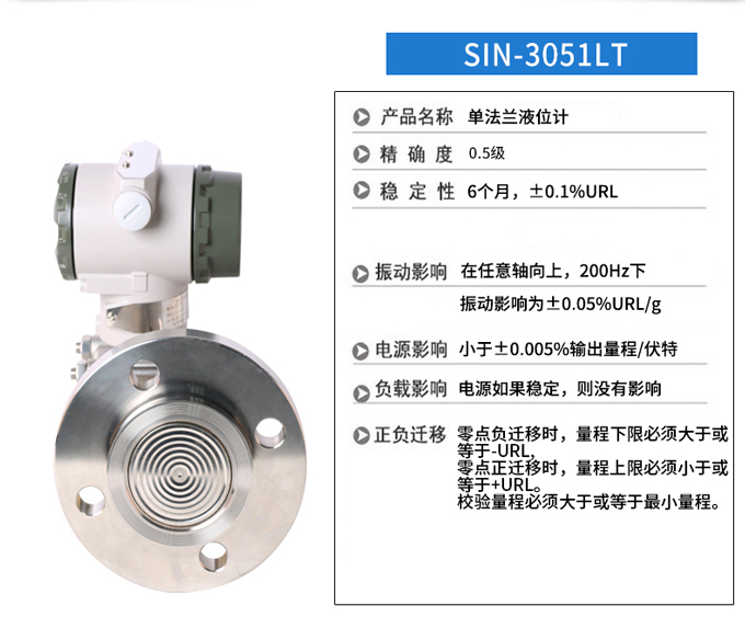 SIN-3051LT型單法蘭差壓液位變送器是我公司引進(jìn)國(guó)外先進(jìn)技術(shù)和設(shè)備生產(chǎn)的新型變送器,關(guān)鍵原材料,元器件和零部件均源自進(jìn)口,整機(jī)經(jīng)過嚴(yán)格組裝和測(cè)試。